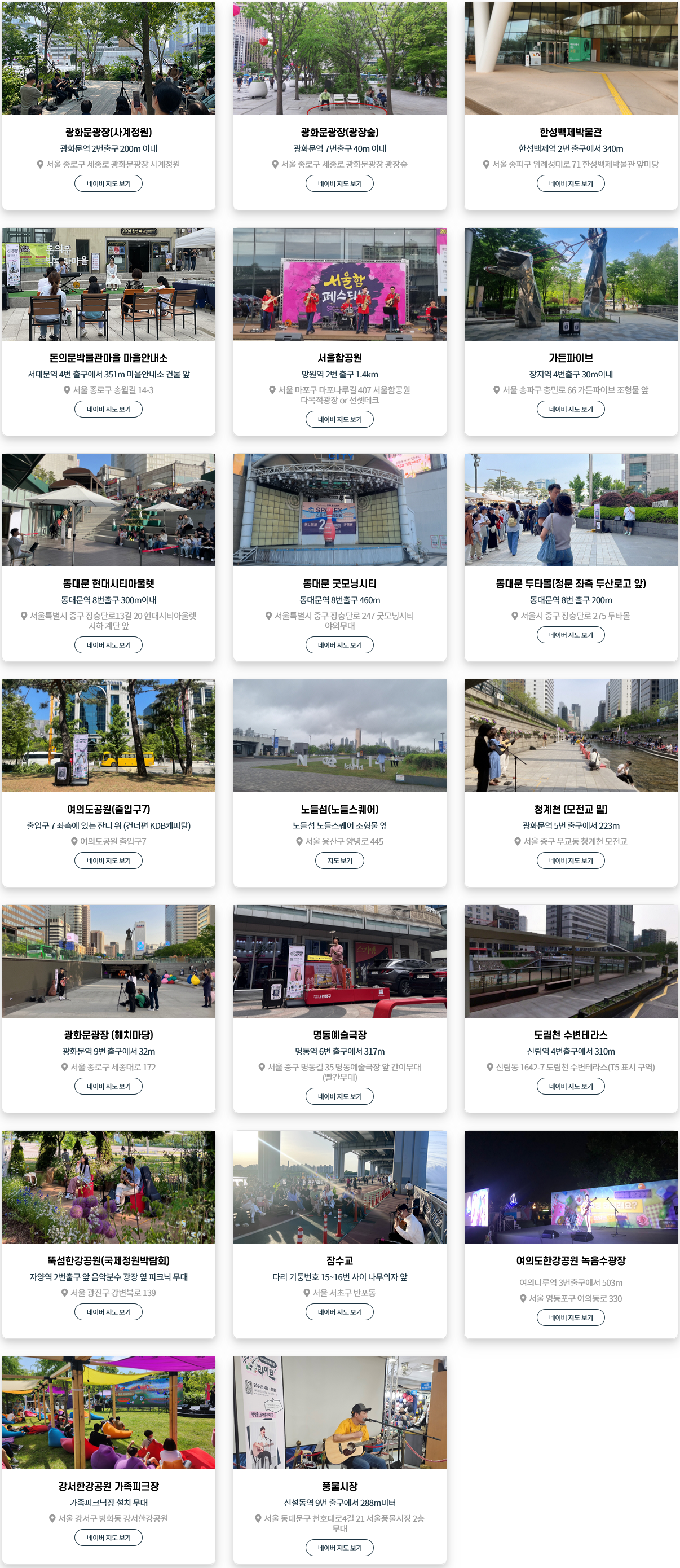2024 서울거리공연 구석구석 라이브 공연장 위치 확인하러 가기