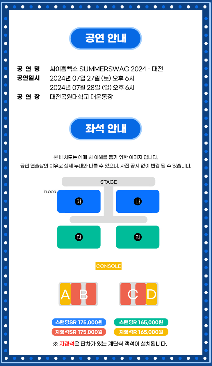 1. 2024 싸이 흠뻑쇼 대전 일정, 장소 및 좌석 배치도