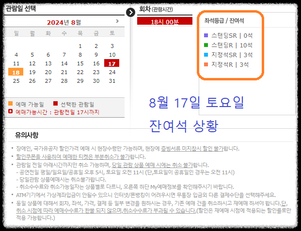 다가오는 8월 17~18일 인천 아시아드 주 경기장에서 싸이 흠뻑쇼가 열리게 됩니다. 한 달 전인 7월 19일 현재 잔여석 상황을 살펴보면 8월 17일 토요일 티켓은 잔여석이 얼마 남지 않은 걸로 확인이 됩니다. 8월 18일 일요일 티켓은 아직 남아있으니 얼른 서두르시기 바랍니다.