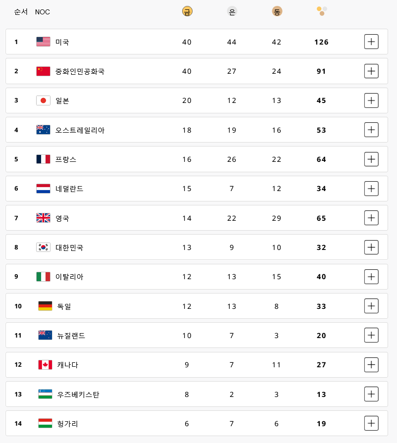 ▶ 2024 파리올림픽 메달순위