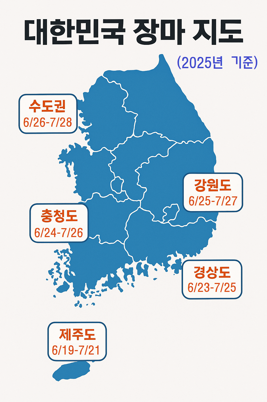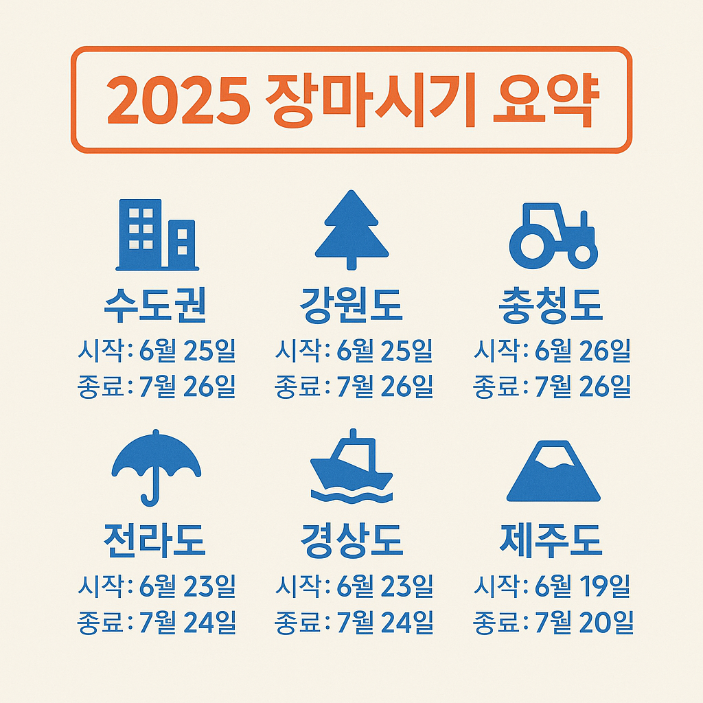 Keywords: 2025년 장마, 지역별 장마 시작일, 장마 종료일, 집중호우 예보, 국지성 폭우