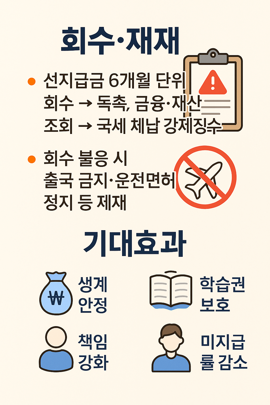 국가는 6개월 단위로 선지급금 회수를 추진하며,