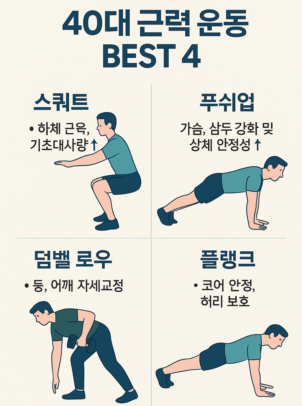 | 푸쉬업 | 가슴·삼두 강화, 상체 안정성↑ |