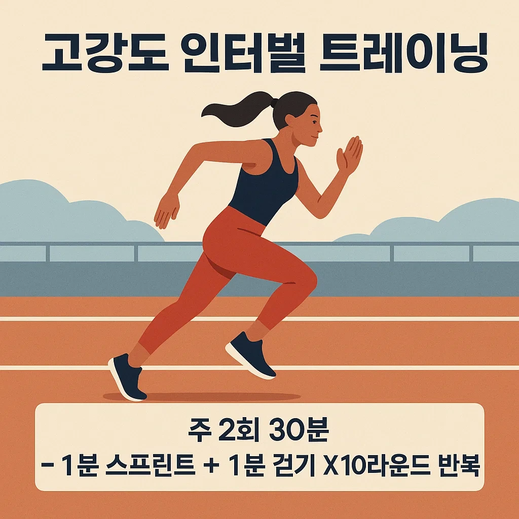 주 2회, 30분 고강도 인터벌 트레이닝(HIIT).