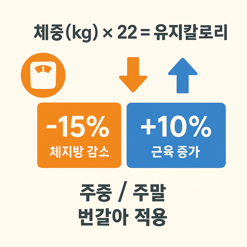 체중(kg) × 22 = 하루 유지칼로리.